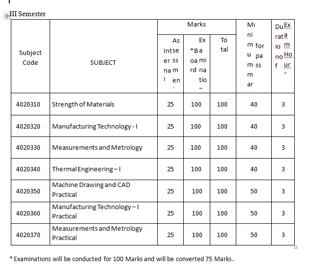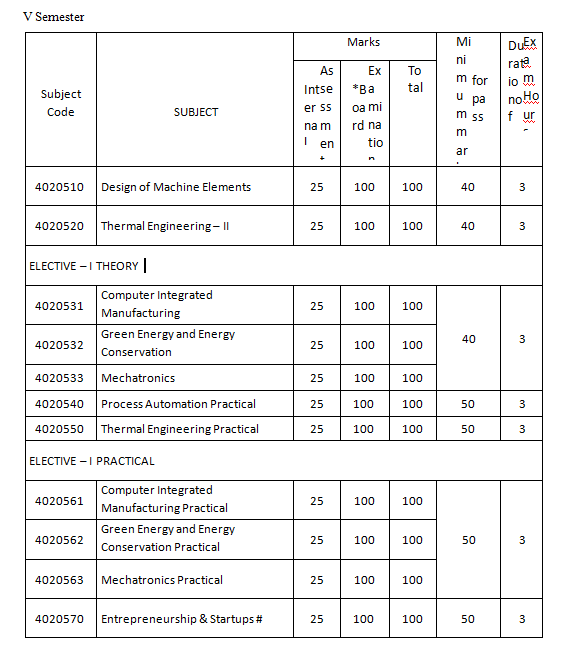Curriculum and Syllabus The Curriculum outline of the Diploma in Mechanical Engineering Course is given below: For Detailed Curriculum and Syllabus click here