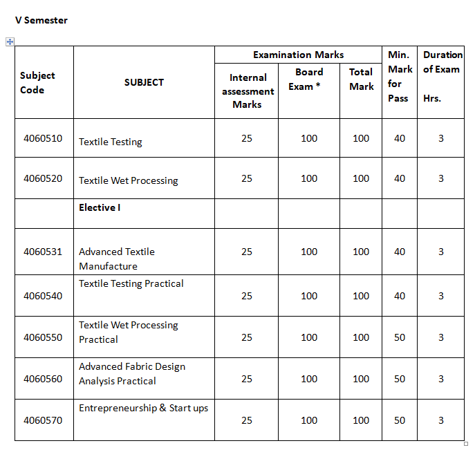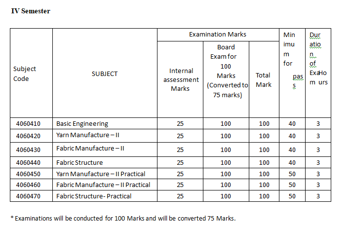 Curriculum and Syllabus The Curriculum outline of the Diploma in Textile Technology Course is given below: For Detailed Curriculum and Syllabus click here
