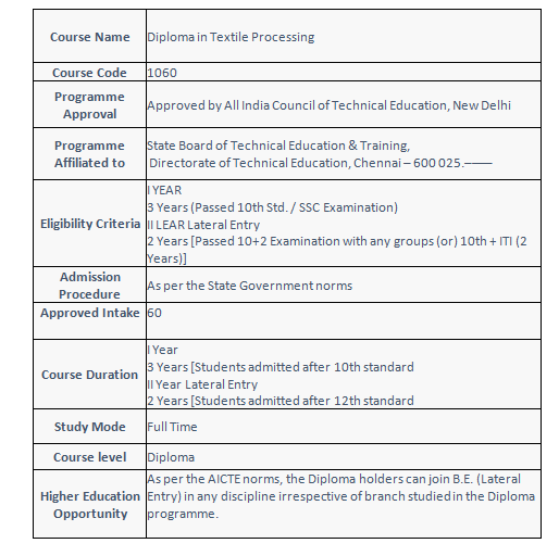 Courses Offered: Diploma in Textile Processing