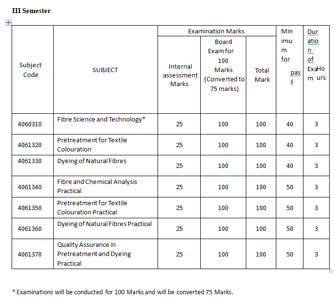 Curriculum and Syllabus The Curriculum outline of the Diploma in Textile Processing Course is given below: For Detailed Curriculum and Syllabus click here