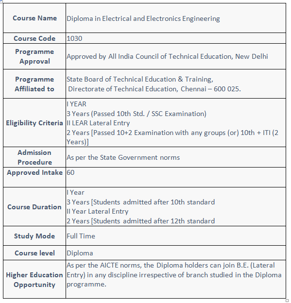 Courses Offered: Diploma in Electrical and Electronics Engineering