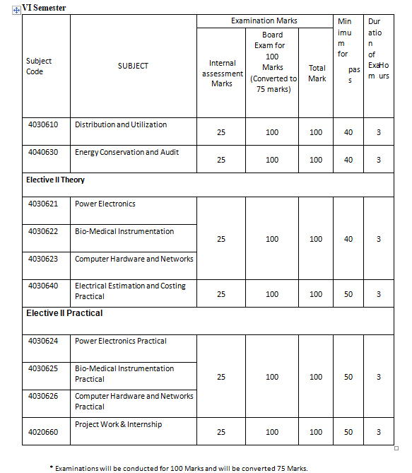 Curriculum and Syllabus The Curriculum outline of the Diploma in Electrical and Electronics Course is given below: For Detailed Curriculum and Syllabus click here