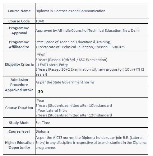 Courses Offered: Diploma in Electronics and Communication Engineering