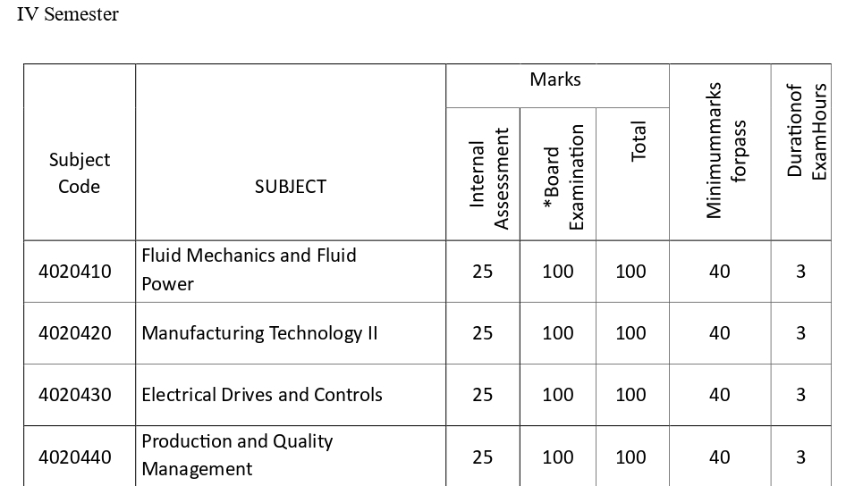 The Curriculum outline of the Diploma in Mechanical Engineering Course is given below: